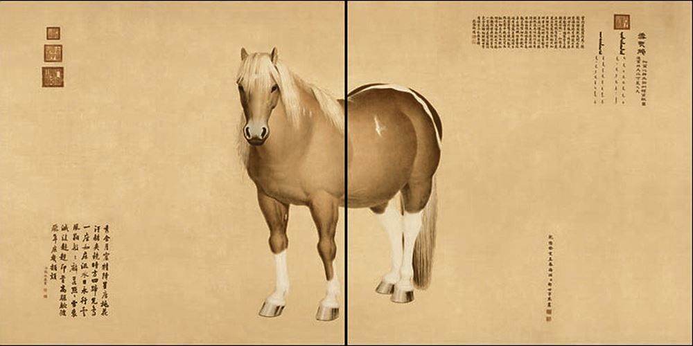 此馬是科爾沁君王諾們額爾圖穌圖於乾隆八年(公元1743)進貢,郎世寧奉命繪製此圖。 觀看雪點雕會有一種大氣帝王之相的感覺,尤其是炯炯有神的眼神,站姿祥而不燥、威而不俗。在十駿中無論是外型或是命名,雪點雕都堪稱是帝王最愛的珍寶,被稱為“帝王之星”真是恰如其分。