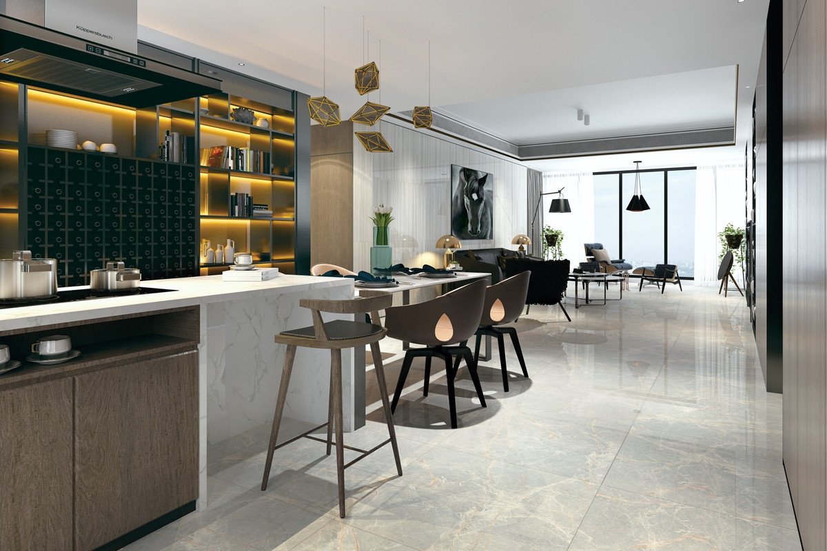 簡約的灰色係,紋理自然柔和,於空間之中表達現代、簡約之美,具有一種低調的奢華,及對浪漫生活無限期許,讓人放空心靈,美醉心脾。