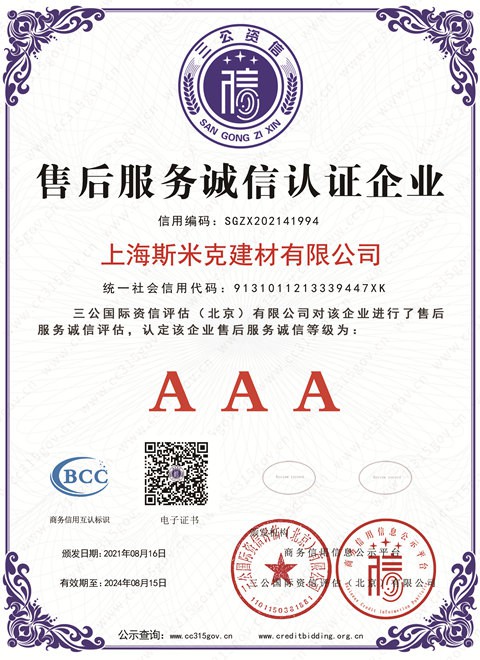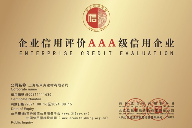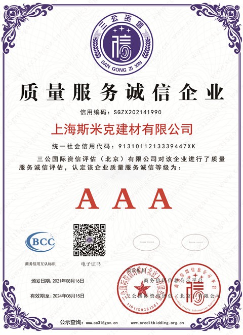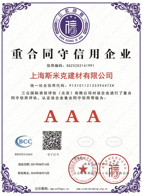 • 上海青青草原网址建材有限公司AAA級信用企業