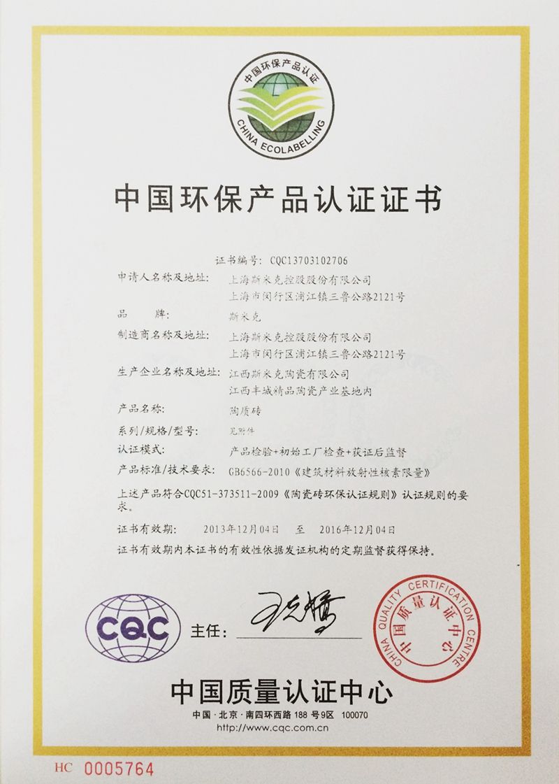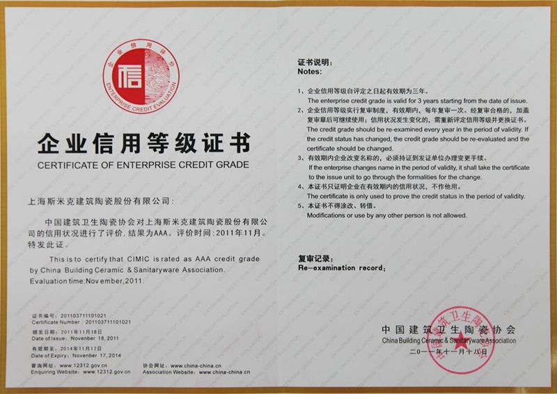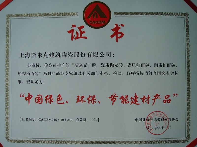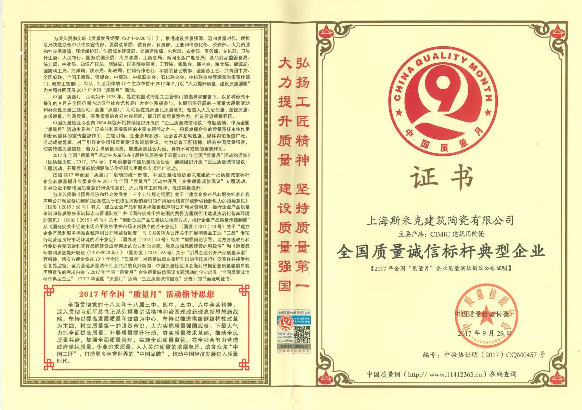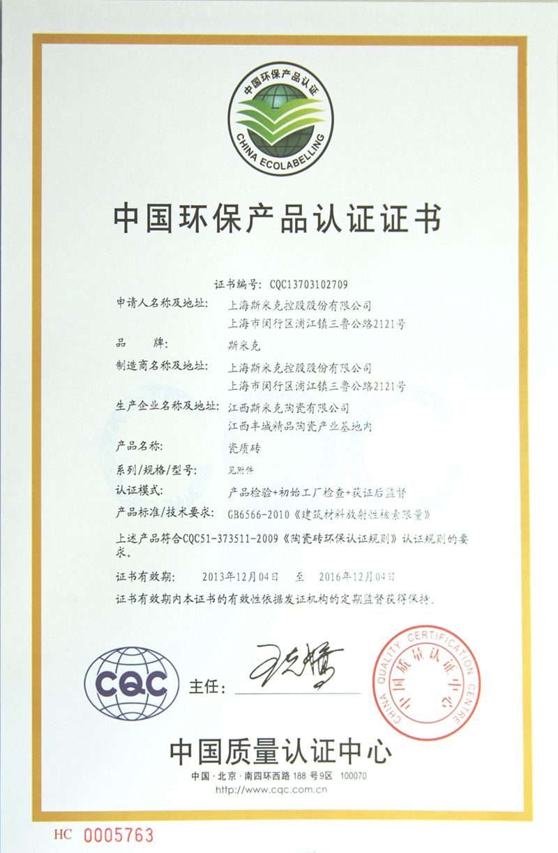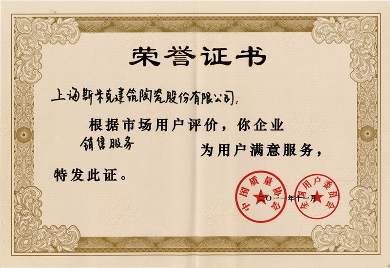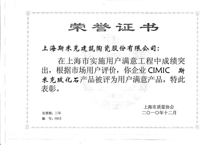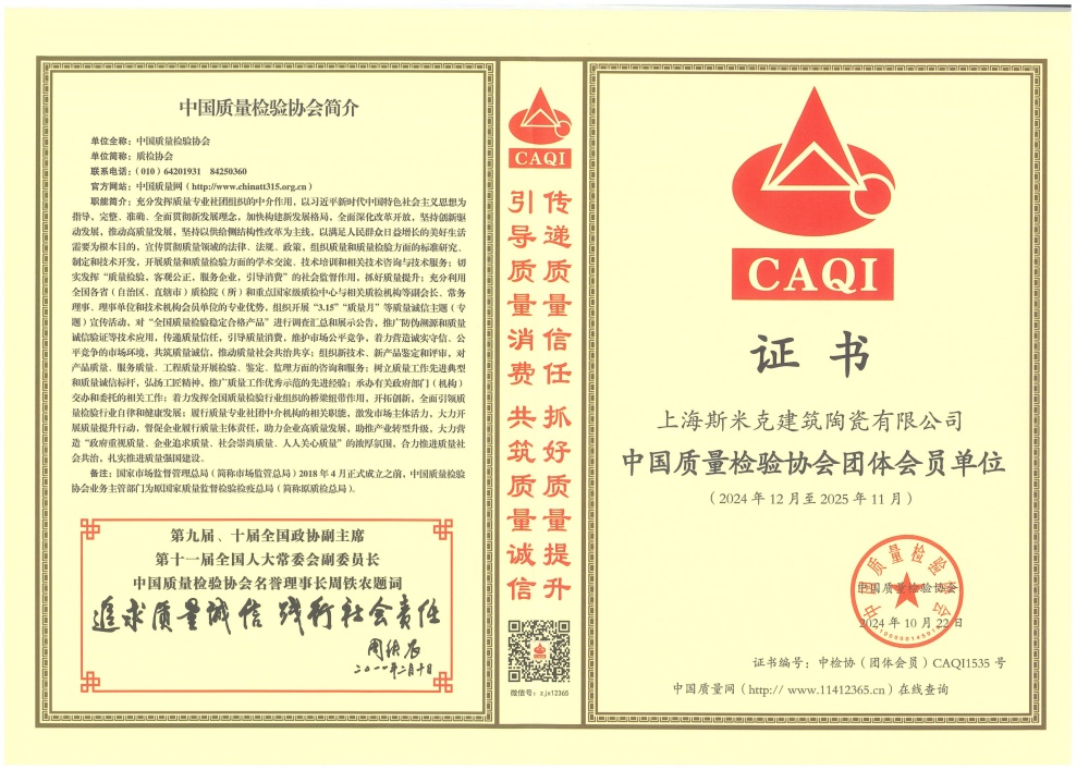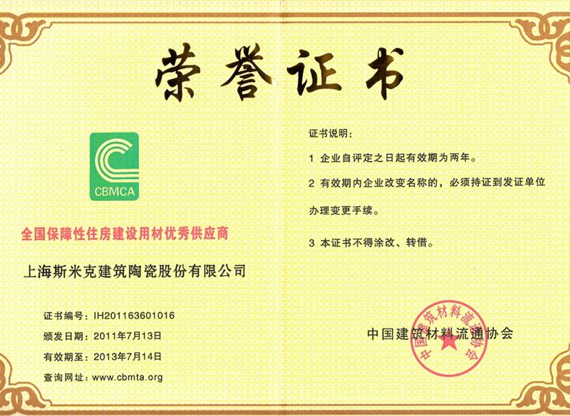 Aug  China Association for Quality Inspection’s “Product of Reliable Quality” certification, “National Ceramics Brof Distinction Superior Quality” certification, “National Ceramics Company of Distinction Superior Quality” certification