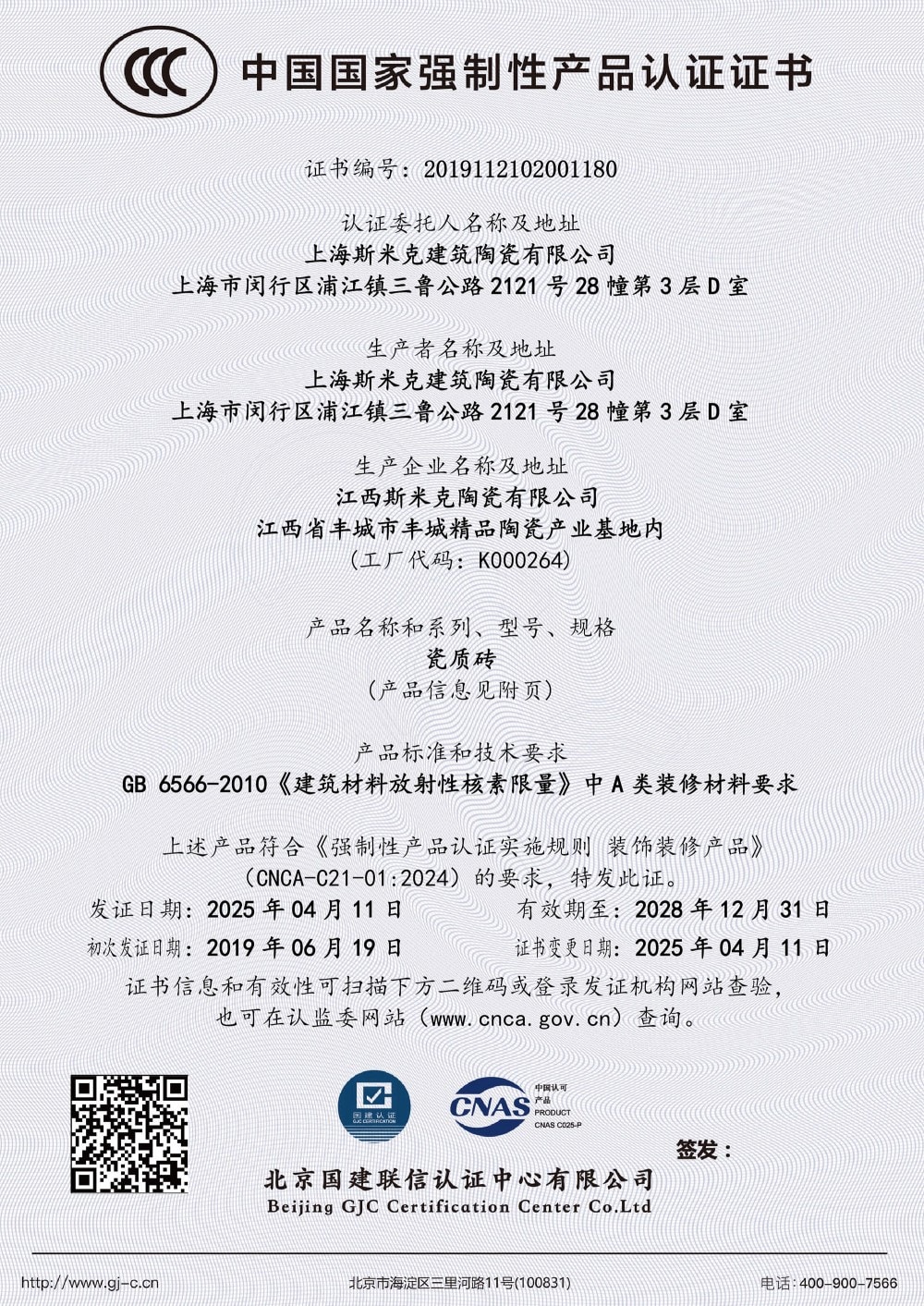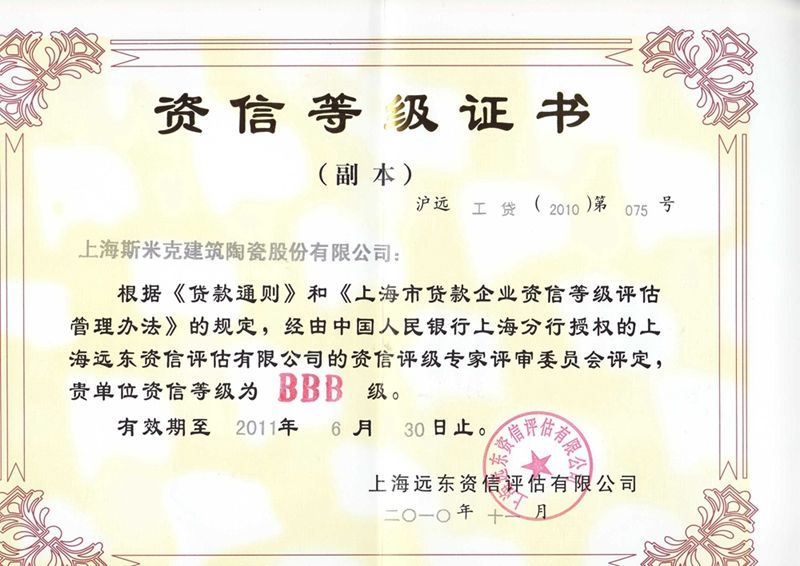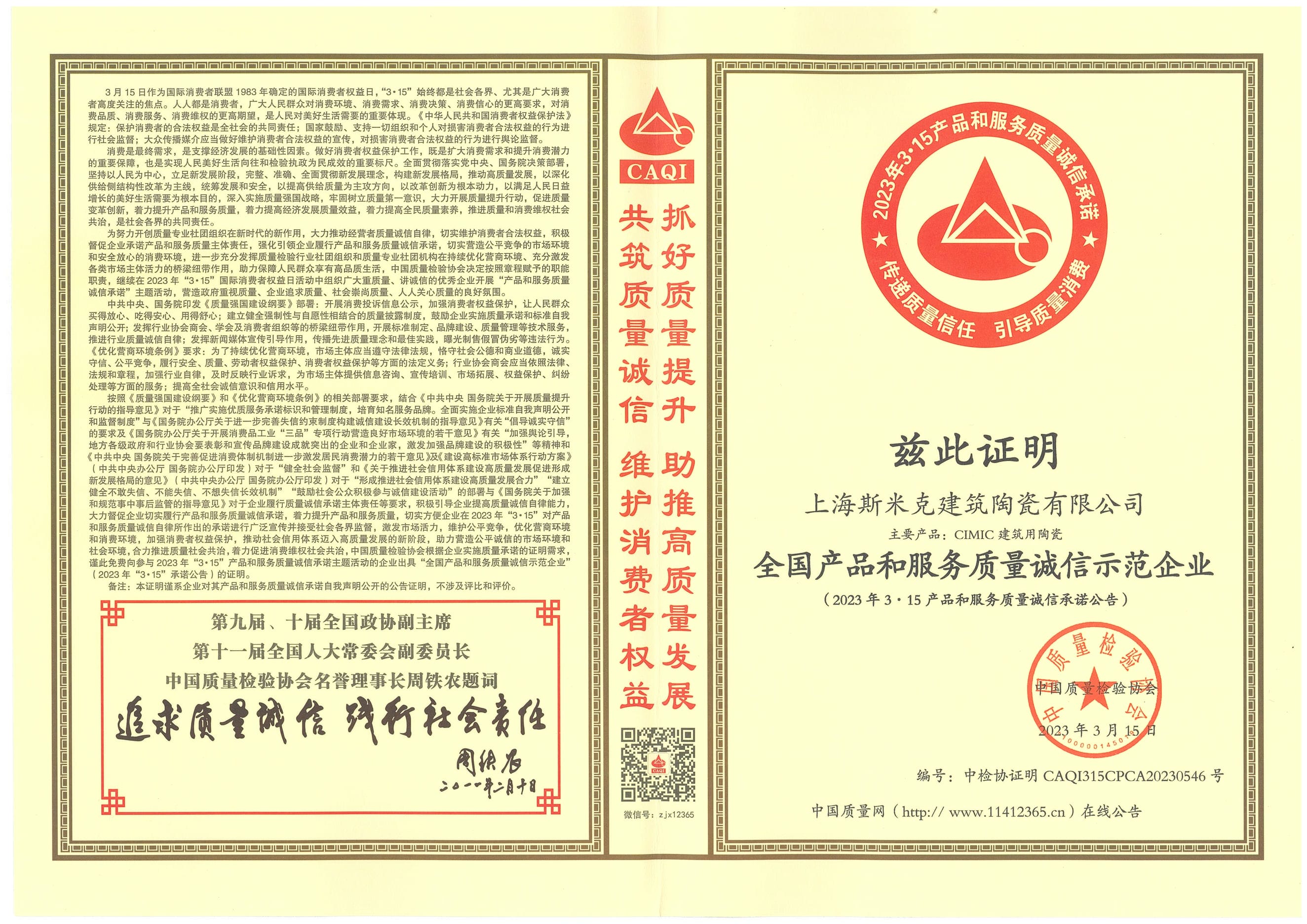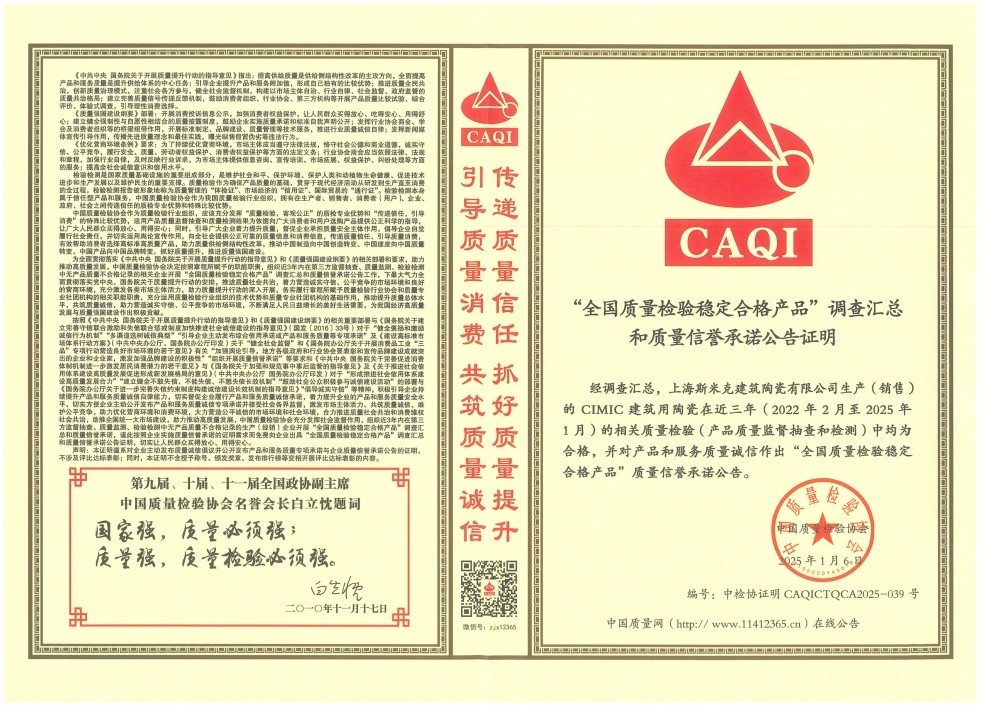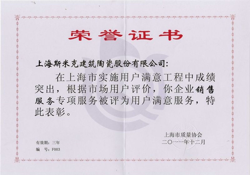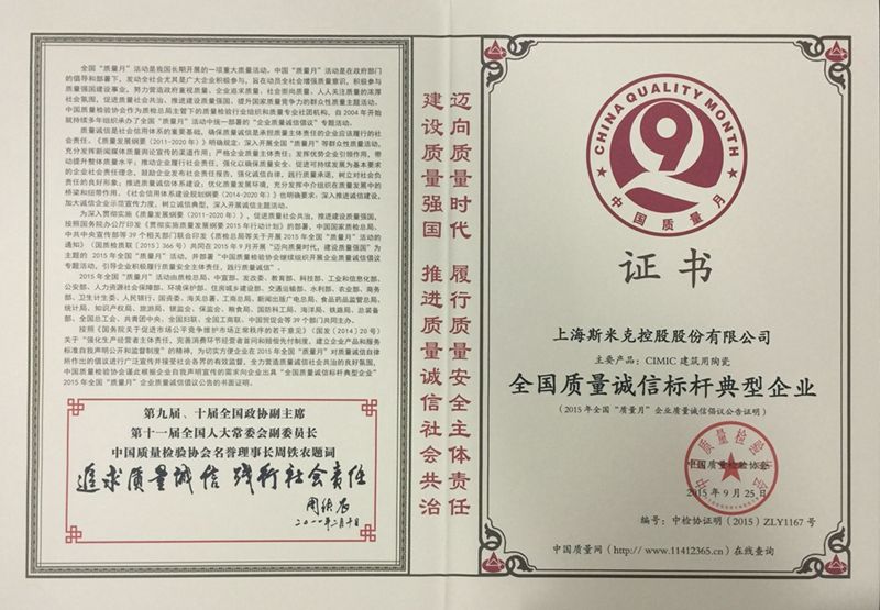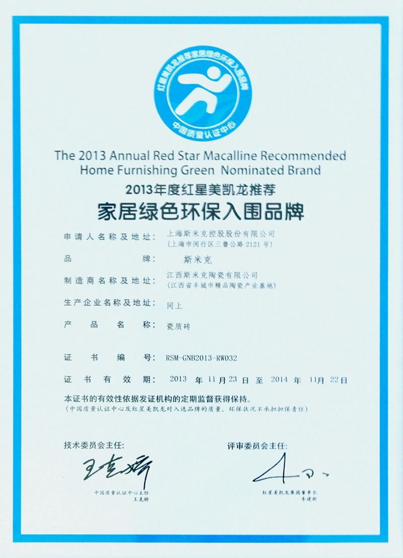 Aug  China Association for Quality Inspection’s “Product of Reliable Quality” certification, “National Ceramics Brof Distinction Superior Quality” certification, “National Ceramics Company of Distinction Superior Quality” certification