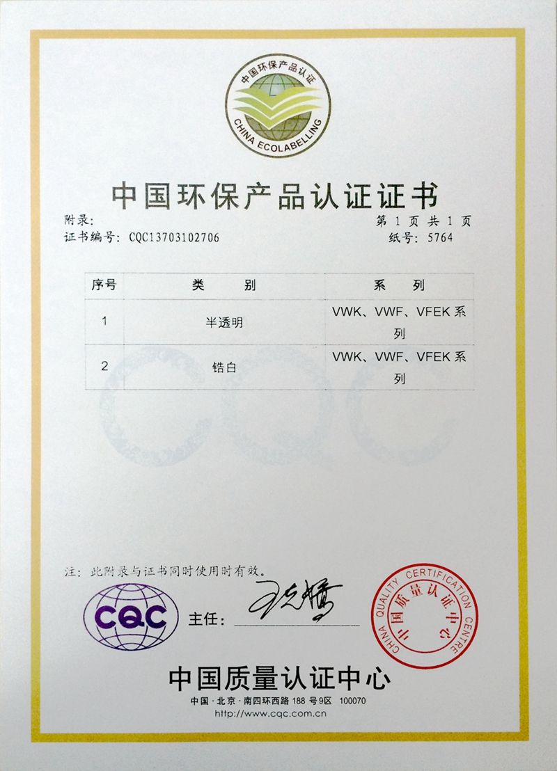 • 中國環境標誌產品認證證書(中文版)