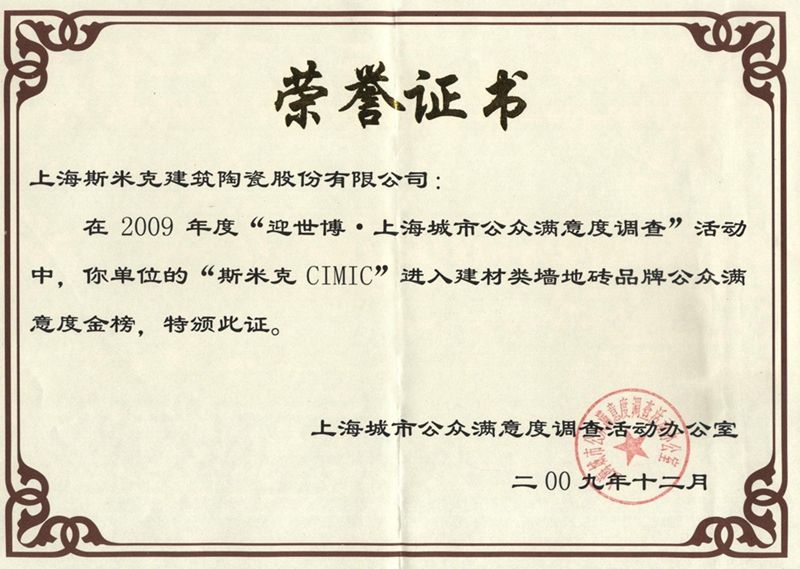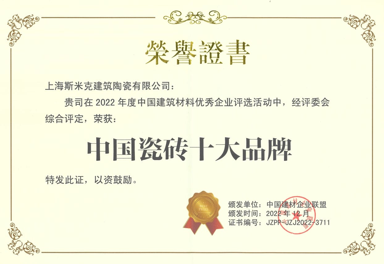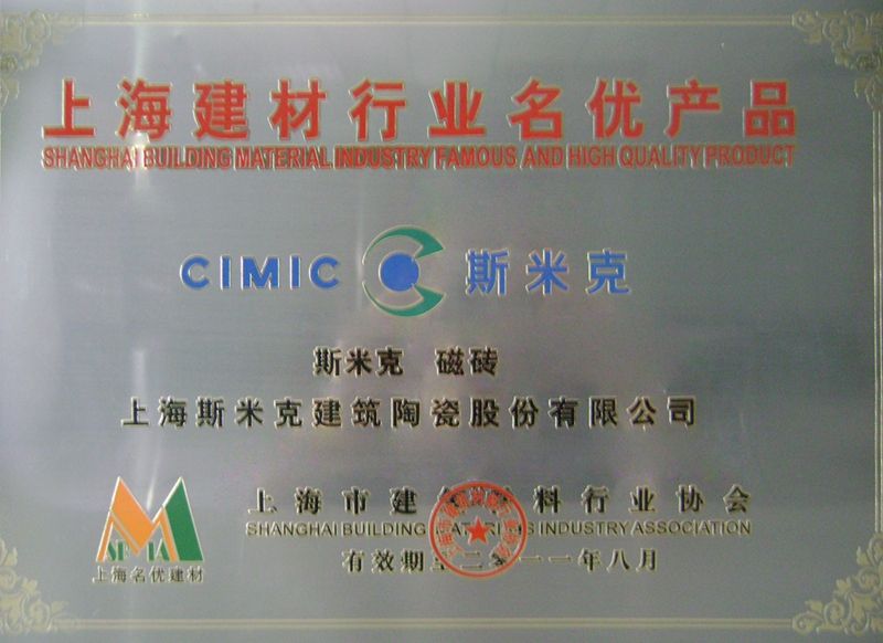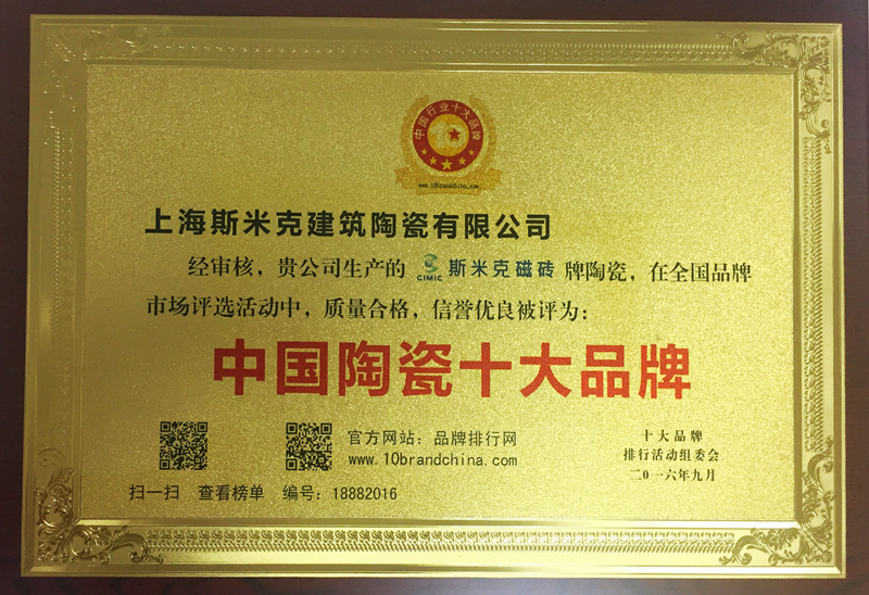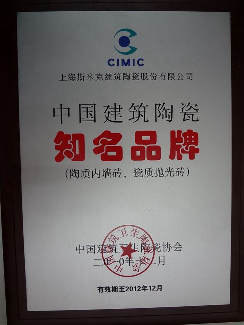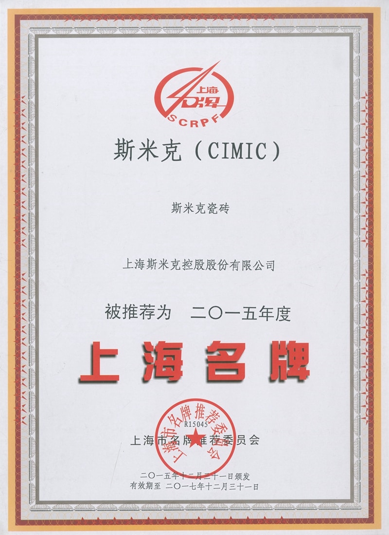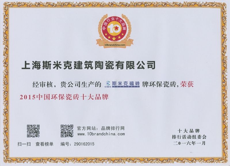 2015  CIMIC won the "2015 China's Top 10 Green Ceramic Tile Brands" award