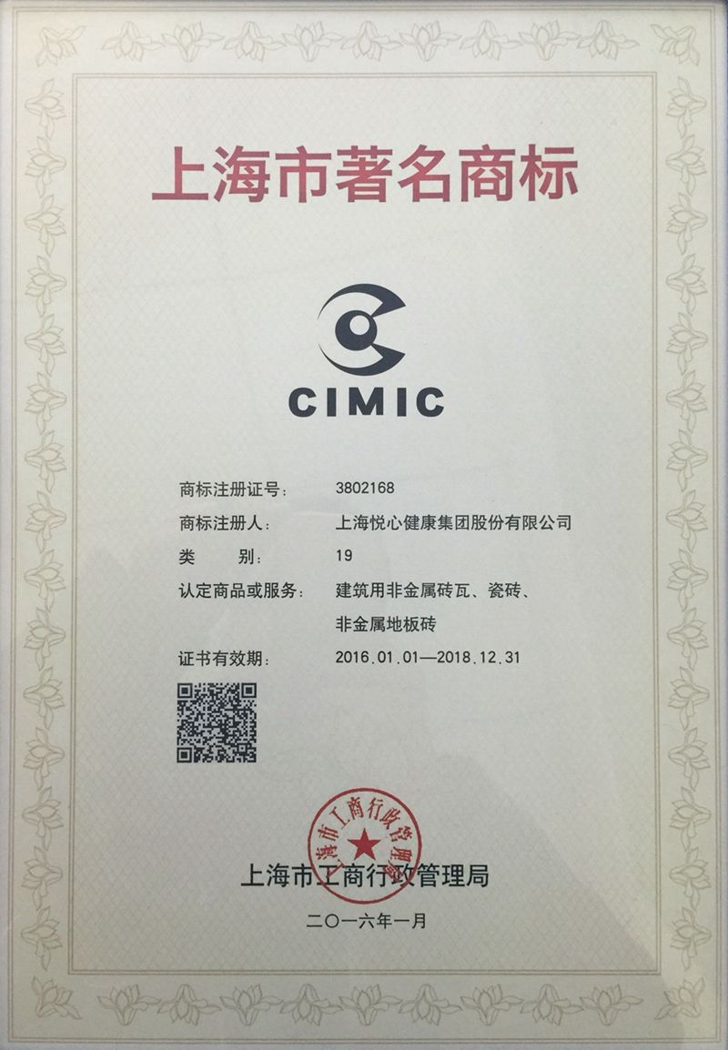 CIMIC was awarded the title "Shanghai's Famous Brand" by SCRPF