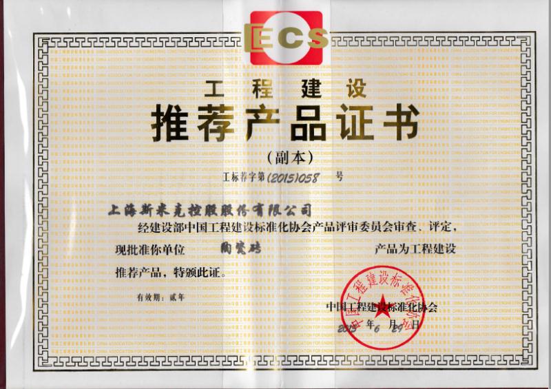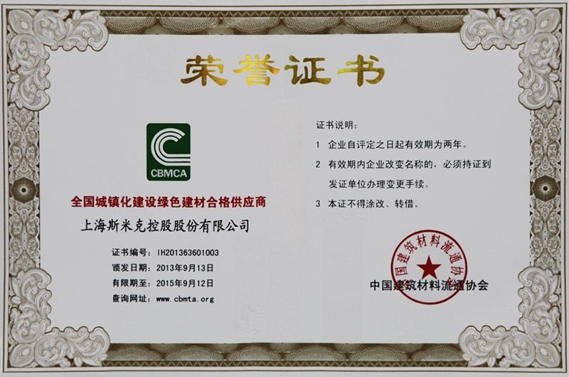 • 中國綠色建材產品認證證書