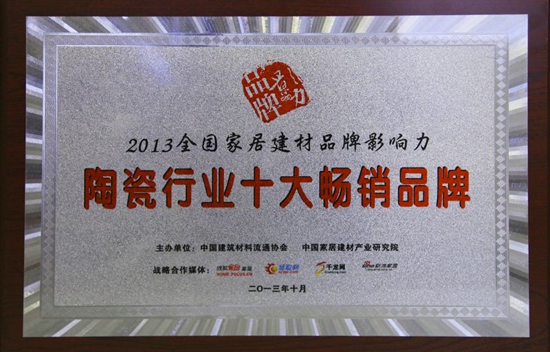 1月  榮獲中國建材企業聯盟“中國瓷磚十大品牌”