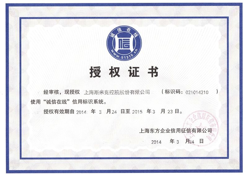 獲三公國際資信評估《誠信經營示範企業》AAA級(有效期至2024/8/15) 獲三公國際資信評估《重質量守信用信企業》AAA級(有效期至2024/8/15)