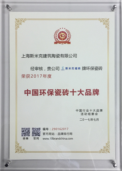 2017  CIMIC won the "2017 China's Top 10 Green Ceramic Tile Brands" award;