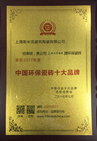 2017年    榮獲“2017年度中國環保瓷磚十大品牌”稱號