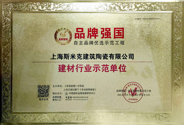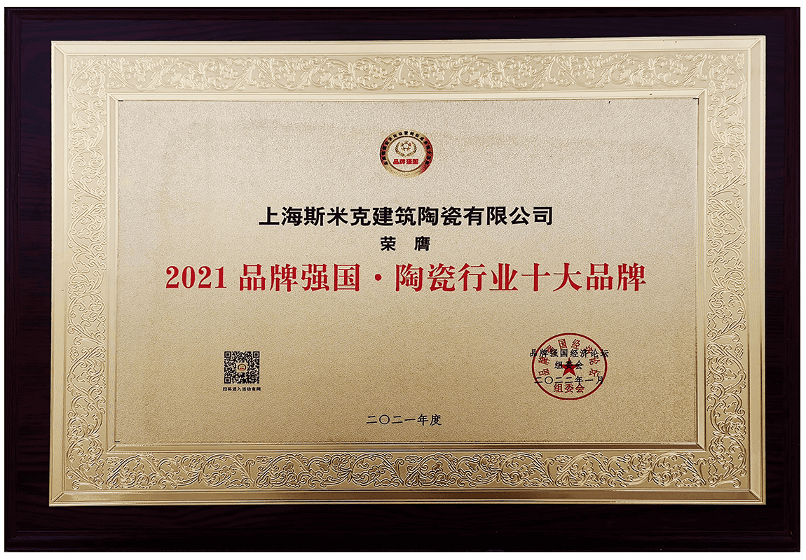 1月    獲2021年度品牌強國經濟論壇 “2021品牌強國·陶瓷行業十大品牌”