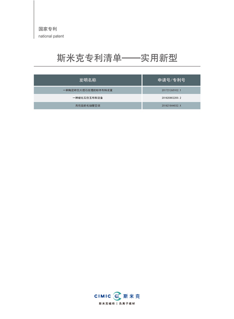 Jan  CIMIC won the 5th Boao Enterprise Summit’s “2021 China Ceramics Industry’s 10 Most Innovative Companies” award