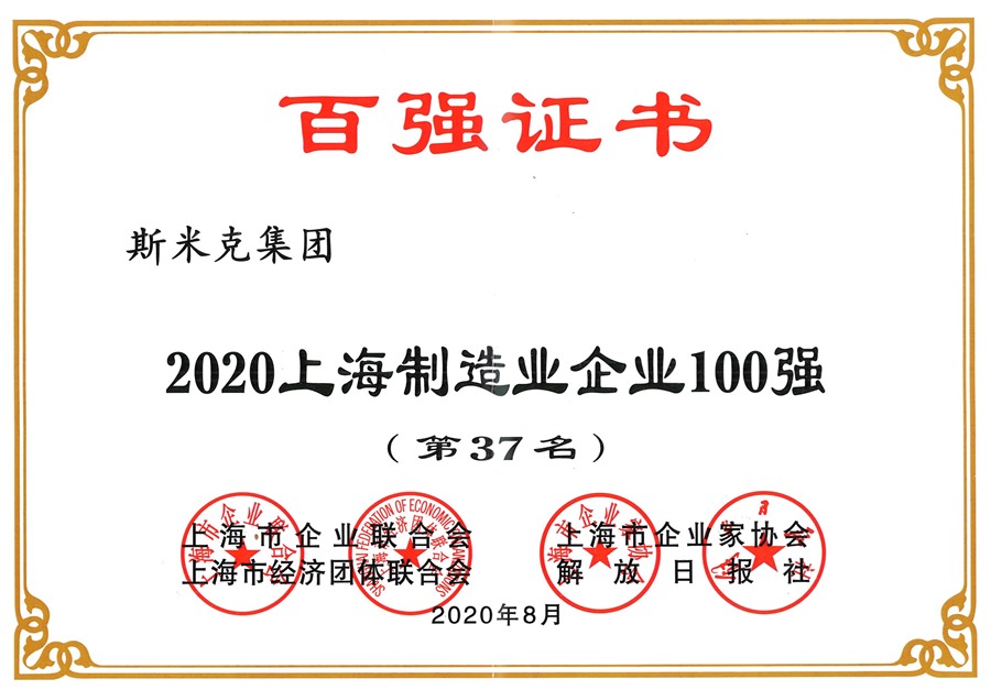 榮獲“2020上海製造業企業100強“"