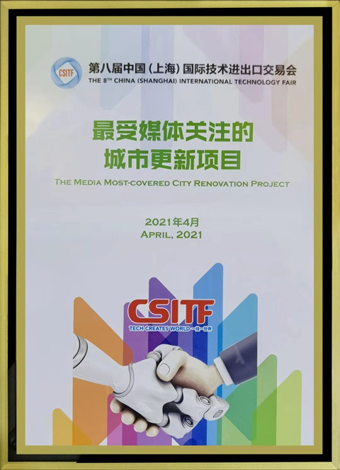 4月  青青草原网址集團榮獲第八屆中國(上海)國際技術進出口交易會“最受媒體關注的城市更新項目”證書