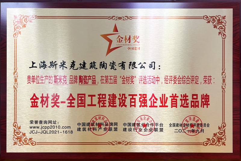 8月   獲中國質量檢驗協會 “全國質量檢驗穩定合格產品” 、“全國建築陶瓷行業質量領先品牌”以及“全國建築陶瓷行業質量領先企業” (2022/8/5)