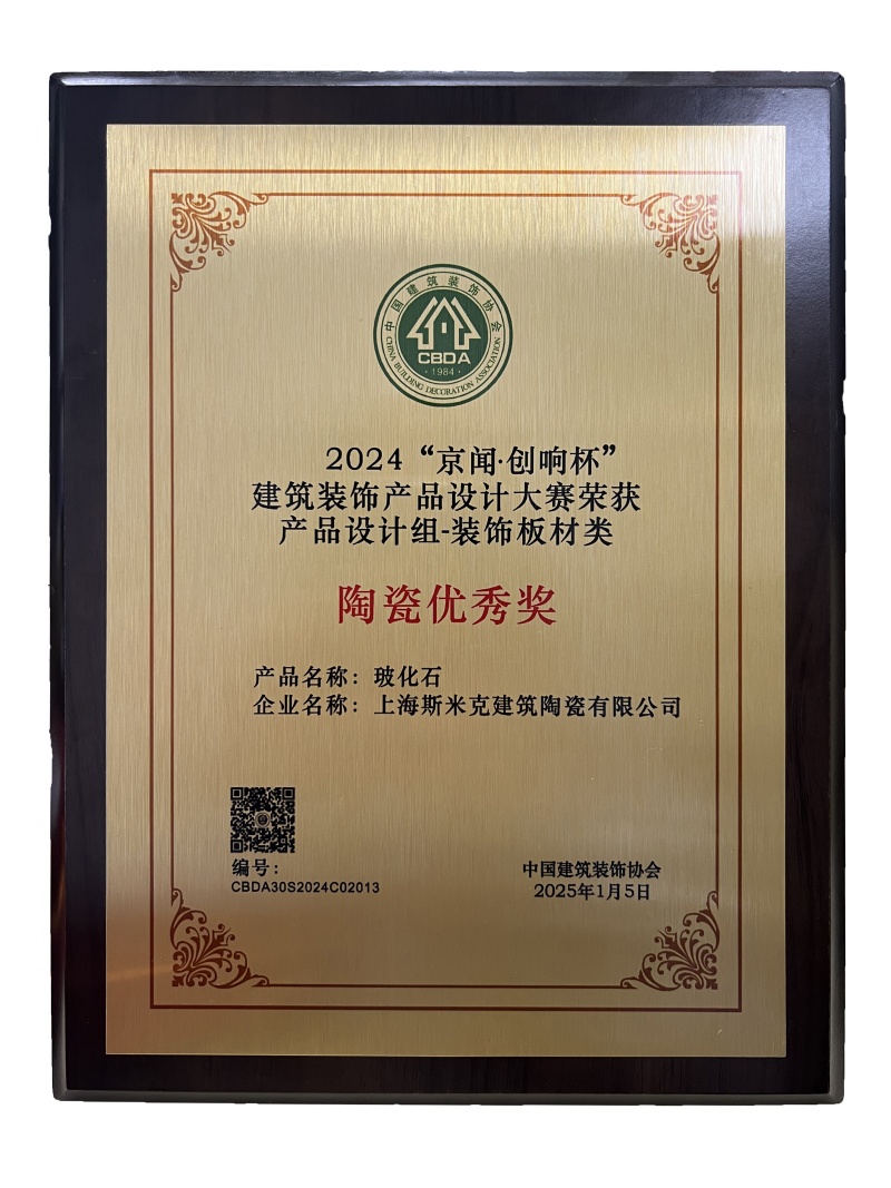 • “京聞·創響杯”建築裝飾產品設計大賽榮獲產品設計組裝飾板材類-陶瓷優秀獎