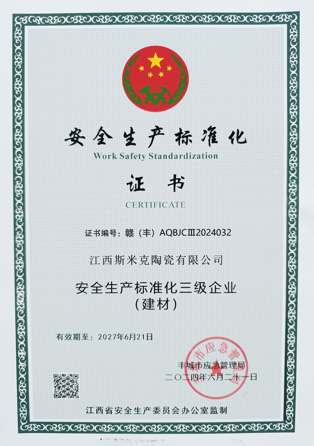 • 安全生產標準化證書